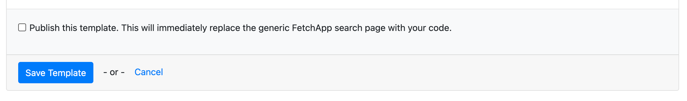 Note that unchecking/unpublishing will revert to the 2.0 default template and checking/publishing it will override the 2.0 default template.